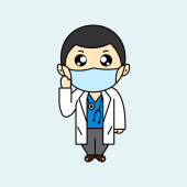 Cute wektor kreskówek ilustracja księdza w masce chirurgicznej i rękawice lateksowe jako ochrona przed stanem zagrożenia zdrowia