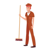 Zdjęcie "Cute wektor kreskówek ilustracja zamiatarka z maską chirurgiczną i rękawice lateksowe jako ochrona przed stanem zagrożenia zdrowia" może być wykorzystywane do celów osobistych i komercyjnych zgodnie z warunkami zakupionej licencji Royalty-free. Obraz jest dostępny do pobrania w jakości wysokiej rozdzielczości do 5760x3840.