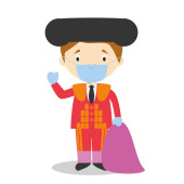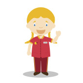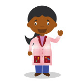 Cute wektor kreskówki ilustracja nauczyciela kobieta w masce chirurgicznej i rękawice lateksowe jako ochrona przed stanem zagrożenia zdrowia