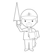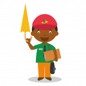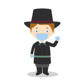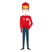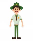 Cute wektor kreskówek ilustracja przewodnika turystycznego z maską chirurgiczną i rękawice lateksowe jako ochrona przed stanem zagrożenia zdrowia