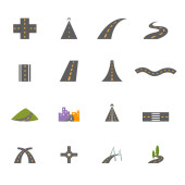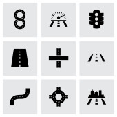Ikony związane z drogami ustawione na tle grafiki i projektowania stron internetowych. Kreatywny symbol ilustracji dla aplikacji webowej lub mobilnej.