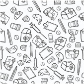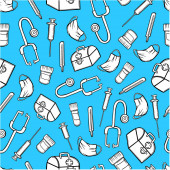 wzór lek lekarz szybko maska antyseptyczna ochrona choroba kontur wektor bezszwowe tło doodle szkic ilustracja