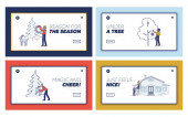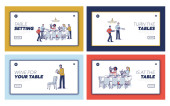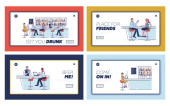 Panika podczas koronawirusu. Strona internetowa Landing Page. Przerażeni ludzie kupują dużo jedzenia, walczą z powodu niedoboru żywności w supermarkecie. Strona internetowa Cartoon Linear Outline płaski wektor ilustracje zestaw