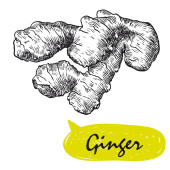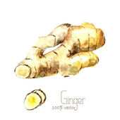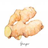 Akwarela ręcznie malowane natura zdrowa kompozycja zestaw z żółtym brązowym korzeniem imbiru i plastry z czarnym kołem biały tytuł tekst izolowany na białym tle dla elementów projektu