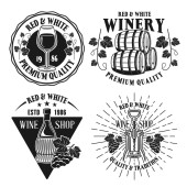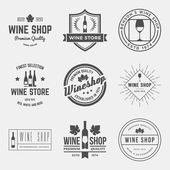 Sklep z winami i zestaw dziewięciu emblematów wektorowych