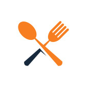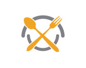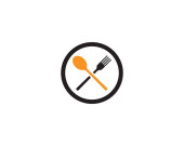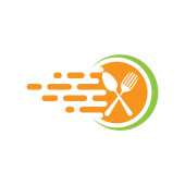 Szablon logo dostawy żywności. Logo jedzenia, łyżka, nóż i widelec. Wektor szablonu zdrowego logo żywności