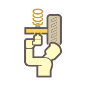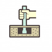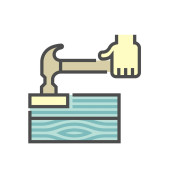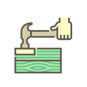 Konstrukcja drewnianej podłogi i ikona wektora młotka.