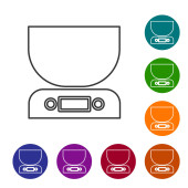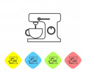 Czarna linia Ikona miksera elektrycznego izolowana na białym tle. Mikser kuchenny. Ustaw ikony w kolorach przycisków okręgu. Ilustracja wektora