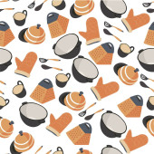 Zdjęcie "Patelnia do grillowania, rękawice ochronne tekstylne, filiżanka i patelnia bezszwowy wzór naczyń. Solniczka ze szpatułką i łyżką, kulinarne instrumenty do przygotowywania potraw. Wektor rondla płaski" może być wykorzystywane do celów osobistych i komercyjnych zgodnie z warunkami zakupionej licencji Royalty-free. Obraz jest dostępny do pobrania w jakości wysokiej rozdzielczości do 5760x3840.