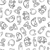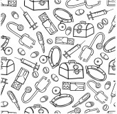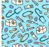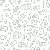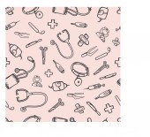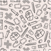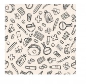 bezszwowe tło medycyny sprzęt zestaw apteka lekarz doodle szkic zarys wzór wydruk plakat baner opakowanie szpital tapety