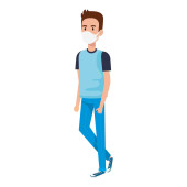 młody człowiek za pomocą maski twarzy odizolowany ikona
