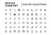 Zestaw ikon wektorowych Office z wypełnionym wyglądem zarysu