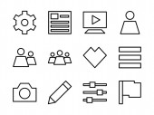 Zestaw ikon biurowych ze stylem konturu. Nadaje się do dowolnego celu.