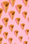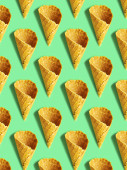 Wzór z pustymi stożkami waflowymi na tle koloru mięty.