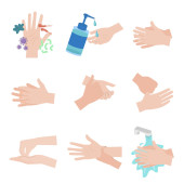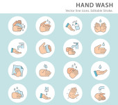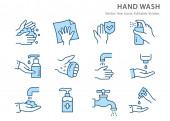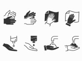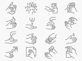 Ikony mycia rąk, takie jak czyste, wycierać, palmy i inne. Ilustracja wektora izolowana na białym.