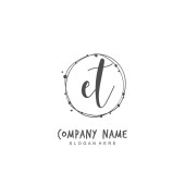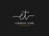 Odręczna litera początkowa E T ET oznaczająca tożsamość i logo. Szablon logo wektora z napisem odręcznym i podpisem.