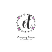 Odręczna litera początkowa E T ET oznaczająca tożsamość i logo. Szablon logo wektora z napisem odręcznym i podpisem.