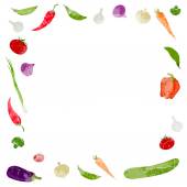 Kwadratowa rama jasnych akwareli ręcznie rysowane warzywa do dekoracji kart, tekstyliów, witryn sklepowych, opakowań, menu