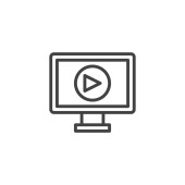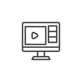 Ikona interfejsu odtwarzacza wideo. liniowy znak stylu dla mobilnej koncepcji i projektowania stron internetowych. Komputer odtwarzacza mediów zarys ikony wektora. Symbol, ilustracja logo. Grafika wektorowa