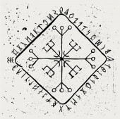 Symbol Papa Legba. Jeden z głównych duchów w religii Voodoo. Pośrednik między ludźmi a światem duchów. Ilustracja wektora w akwarelowym stylu z plamami na czarnym tle.