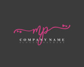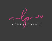 Początkowe AP pismo feministyczne logo pierwszego podpisu, makijaż, ślub, moda, z sercem