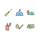 9 Zestaw ikon kempingu do użytku osobistego i komercyjnego...