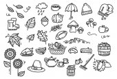 Ręcznie rysowane style z dekoracjami jesiennymi. Bazgroły na sezon zbiorów.