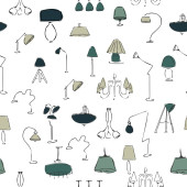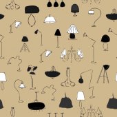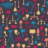 Światło w domu. Żyrandole, lampy podłogowe i lampy. Wektor bezszwowy wzór