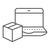 Zdjęcie "Laptop z pudełkiem na ikonie linii ekranu. Notatnik z tekturową ilustracją wektora pudełka izolowany na białym. Parsel na szkic komputerowy styl projektowania, przeznaczony do sieci web i aplikacji. Eps 10." może być wykorzystywane do celów osobistych i komercyjnych zgodnie z warunkami zakupionej licencji Royalty-free. Obraz jest dostępny do pobrania w jakości wysokiej rozdzielczości do 5760x3840.