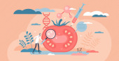 Zdjęcie "Inżynieria genetyczna. Genetycznie zmodyfikowana żywność, genetycznie zmodyfikowana żywność. Dodatki do żywności. Genetycznie zmodyfikowana koncepcja żywności. Rekombinacja DNA. Ilustracja wektora płaskiego" może być wykorzystywane do celów osobistych i komercyjnych zgodnie z warunkami zakupionej licencji Royalty-free. Obraz jest dostępny do pobrania w jakości wysokiej rozdzielczości do 5760x3840.