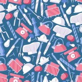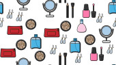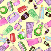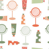 Płynny powtarzalny wzór naturalnych produktów i narzędzi do pielęgnacji skóry.Kremy do rąk i luster płaski wektor ilustracji.