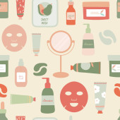 Zdjęcie "Płynny powtarzalny wzór naturalnych produktów i narzędzi do pielęgnacji skóry.Kremy do rąk i luster płaski wektor ilustracji." może być wykorzystywane do celów osobistych i komercyjnych zgodnie z warunkami zakupionej licencji Royalty-free. Obraz jest dostępny do pobrania w jakości wysokiej rozdzielczości do 5760x3840.
