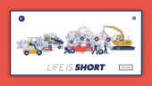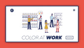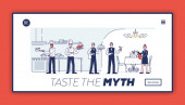 Koncepcja produkcji soków. Strona internetowa Landing Page. Ludzie wybierający pomarańcze na plantacji, praniu, sortowaniu
