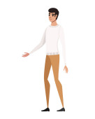 Cute młody człowiek w modzie casual ubrania kreskówka postać design płaski wektor ilustracja izolowane na białym tle.