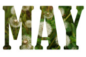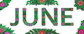 zielone słowo czerwiec z białym kwiatem na tle natury