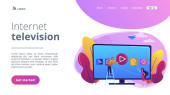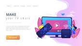 Zdjęcie "Strona lądowania koncepcji Smart TV box." może być wykorzystywane do celów osobistych i komercyjnych zgodnie z warunkami zakupionej licencji Royalty-free. Obraz jest dostępny do pobrania w jakości wysokiej rozdzielczości do 5760x3840.