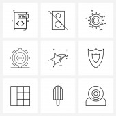 9 Uniwersalne ikony linii dla ustawień Web i Mobile, ustawienie mobilne, kursor, pogoda, księżyc Ilustracja wektora