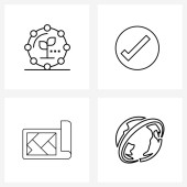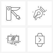 Mobile UI Line Icon Zestaw 4 współczesnych piktogramów dłoni, odcisku palca, podziału, lustra, identyfikacja Ilustracja wektora