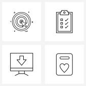 Zdjęcie "Uniwersalne symbole 4 nowoczesnych ikon linii pliku, pin, serce, mapa, kod Ilustracja wektora" może być wykorzystywane do celów osobistych i komercyjnych zgodnie z warunkami zakupionej licencji Royalty-free. Obraz jest dostępny do pobrania w jakości wysokiej rozdzielczości do 5760x3840.