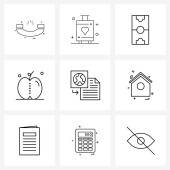 Uniwersalne symbole 4 nowoczesnych ikon linii pliku, pin, serce, mapa, kod Ilustracja wektora