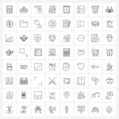 64 Uniwersalne ikony linii dla Web i Mobile dokumentów szpitalnych, folder, ołówek, obraz, zawartość Ilustracja wektorowa