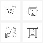 Zdjęcie "Zestaw 4 Simple Line Ikony gotówki, avatar, aparat fotograficzny, internet, strzałka Vector Ilustracja" może być wykorzystywane do celów osobistych i komercyjnych zgodnie z warunkami zakupionej licencji Royalty-free. Obraz jest dostępny do pobrania w jakości wysokiej rozdzielczości do 5760x3840.