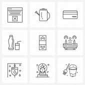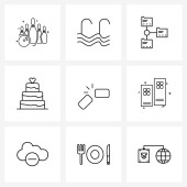 Modern Vector Line Ilustracja 9 Simple Line Ikony centrum biznesowego, obraz, ciasto filiżanka, jpg, obraz Vector Ilustracja