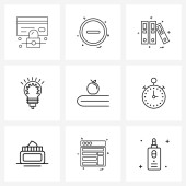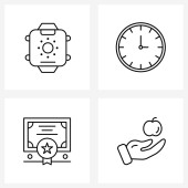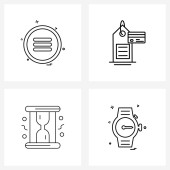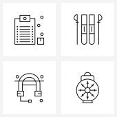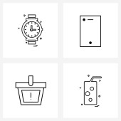 Izolowane symbole Zestaw 4 Simple Line Ikony mebli, awaryjne, żarówka, elektryczne, zegarek Wektor Ilustracja