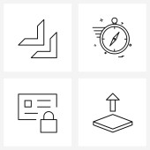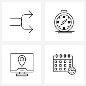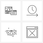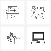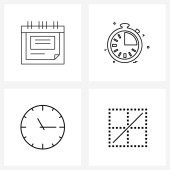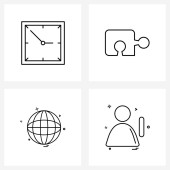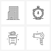 Zestaw 4 prostych ikon linii dla sieci Web i Drukuj, takich jak alarm, budynek, harmonogram, gra, wieże Ilustracja wektorowa