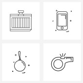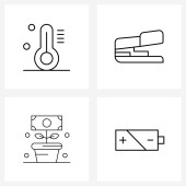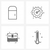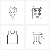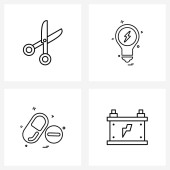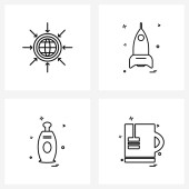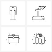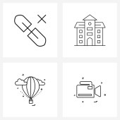 Zestaw 4 ikon i symboli interfejsu użytkownika do pokoju, książki, mebli, płaszczyzny lotniczej, ilustracji wektora USB