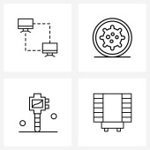 Nowoczesna linia wektorowa Ilustracja 4 prostych ikon linii kompasu, danych, ustawień, zdrowia, technologii Ilustracja wektora