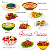 Kuchnia polska, szablon menu wektorowego. Polskie potrawy to bułki kapusty w sosie pomidorowym, pierogi z ziemniakami, bigos i kiełbaski. Chleb, ryby, faramushka i orzechy laskowe mazurka z miodem