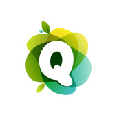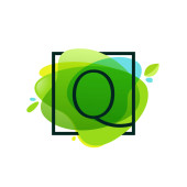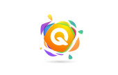 Logo litery Q na kolorowy kwiat akwareli. Idealna czcionka do projektowania zaproszeń, druku tekstylnego, kartki okolicznościowej itp..
