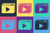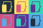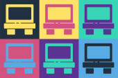 Pop art Monitor komputerowy i ikona telefonu komórkowego izolowane na tle koloru. Zarabianie w Internecie, marketing. Ilustracja wektora